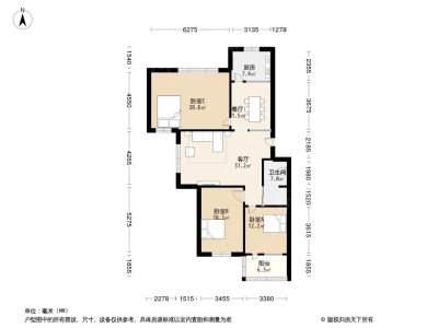 鲁班公寓3室2厅南北