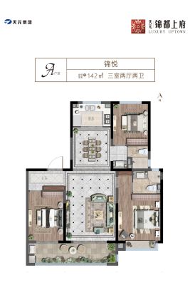 天元锦都上府3室1厅南