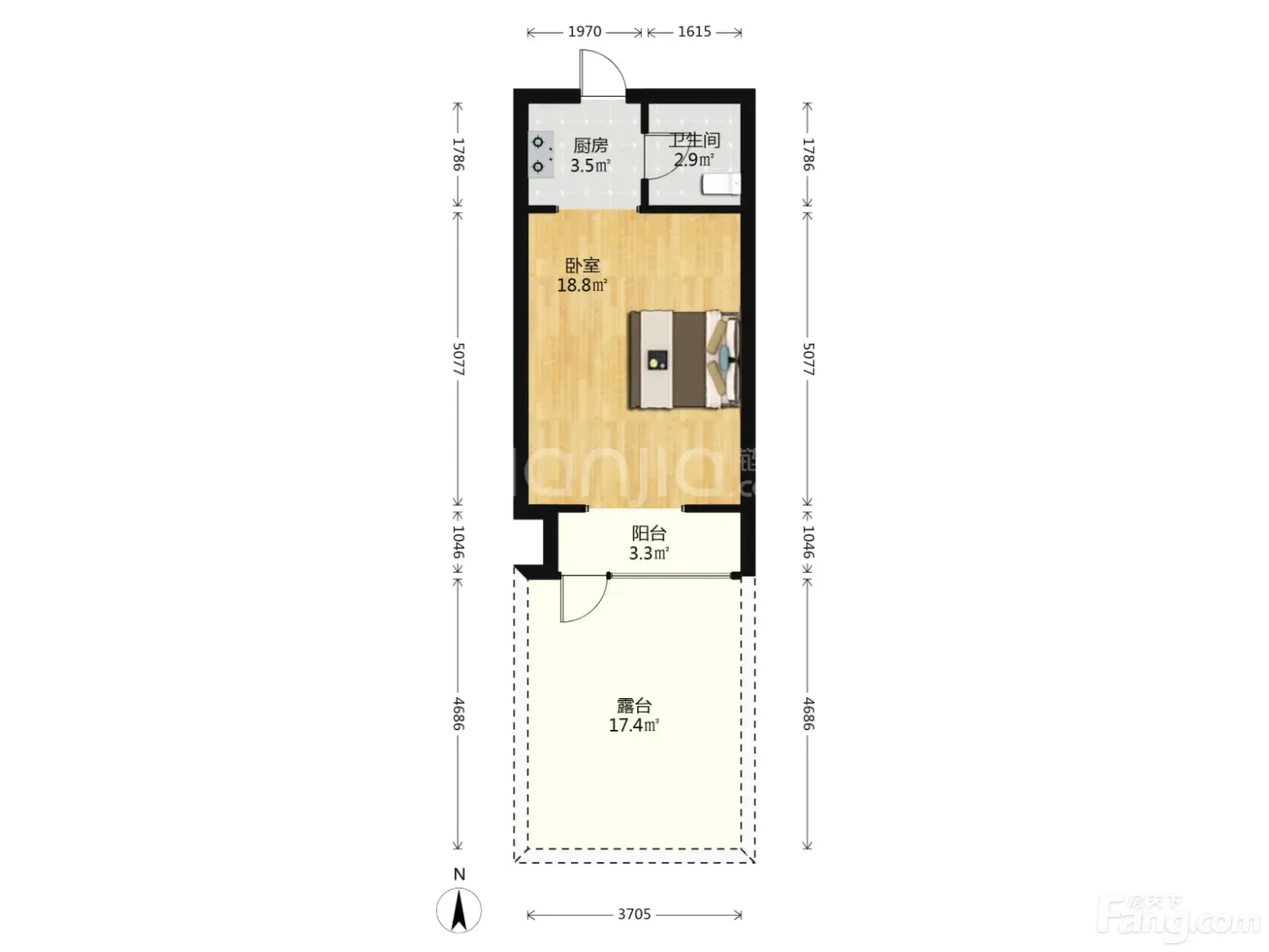 【17平大露台】一室一厅 精装修