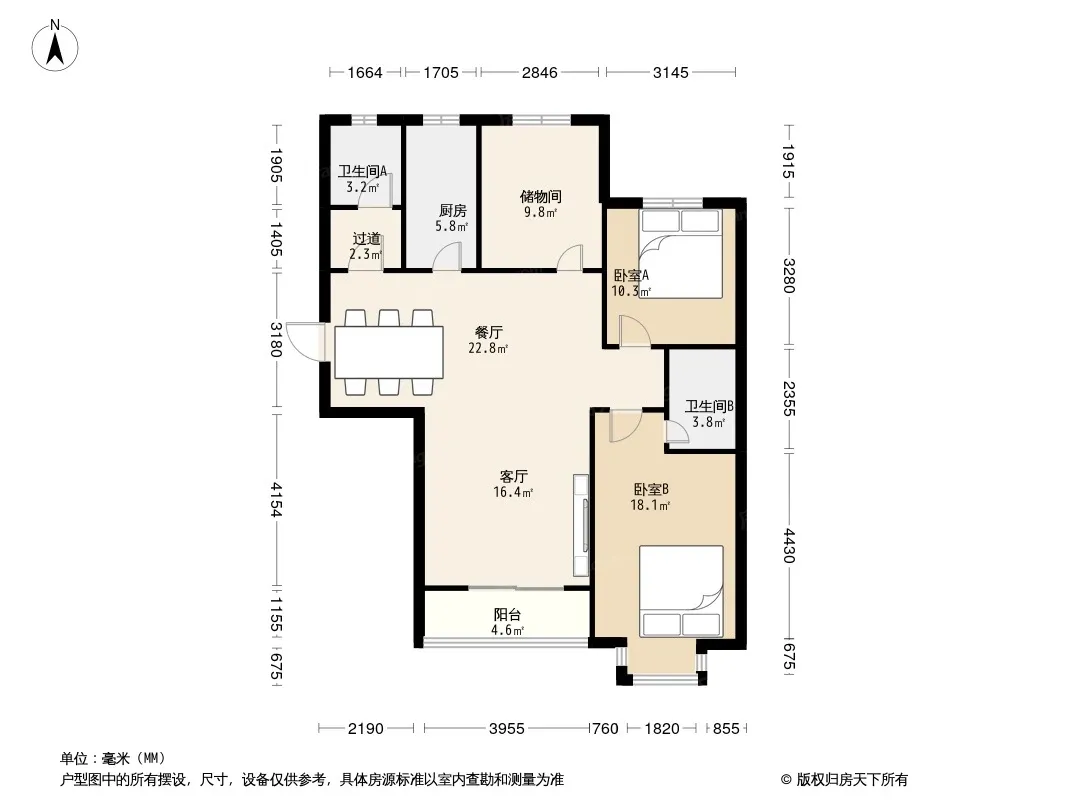 三室两厅两卫 南北通透