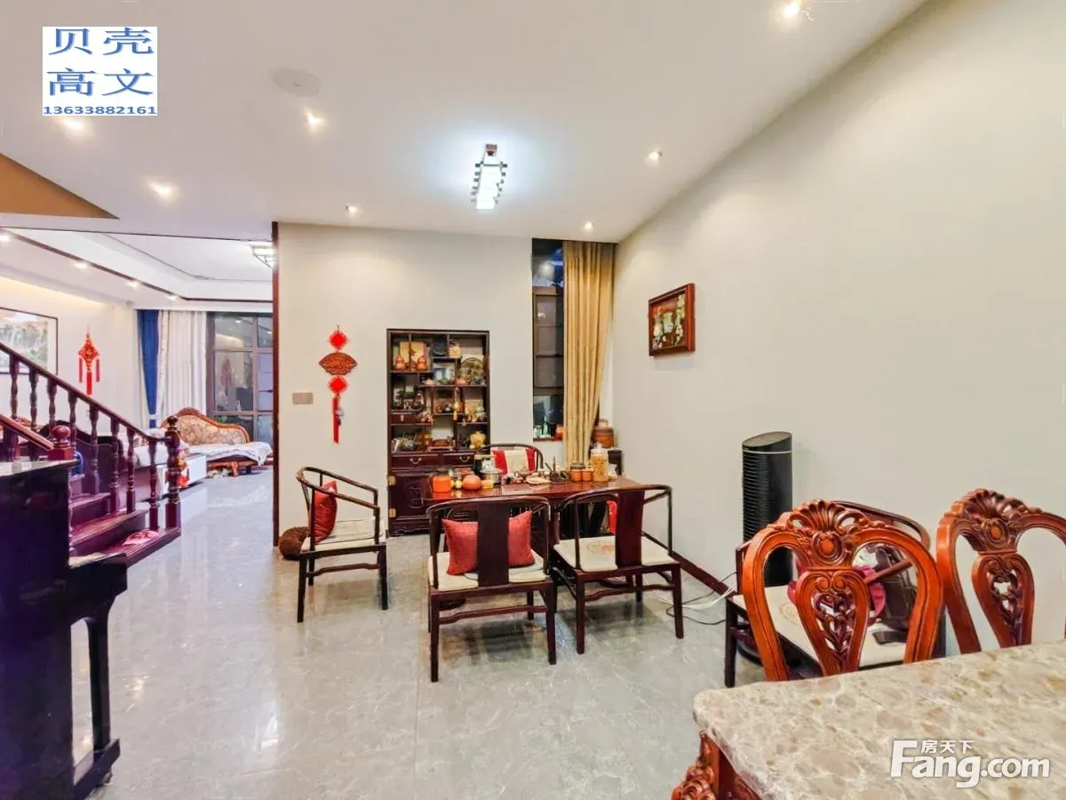 房子证件齐全满两年,地上三层的联排别墅,精装修过的拎包住 小区设计的都是联排别墅 ,低密度别墅区, 绿化比较好 业主孩子在上海买房,当时入手价比较高装修花了一百多,诚心出售 新中式的一个家装,环保材料,露台精装带绿植,一楼三面都带花园
