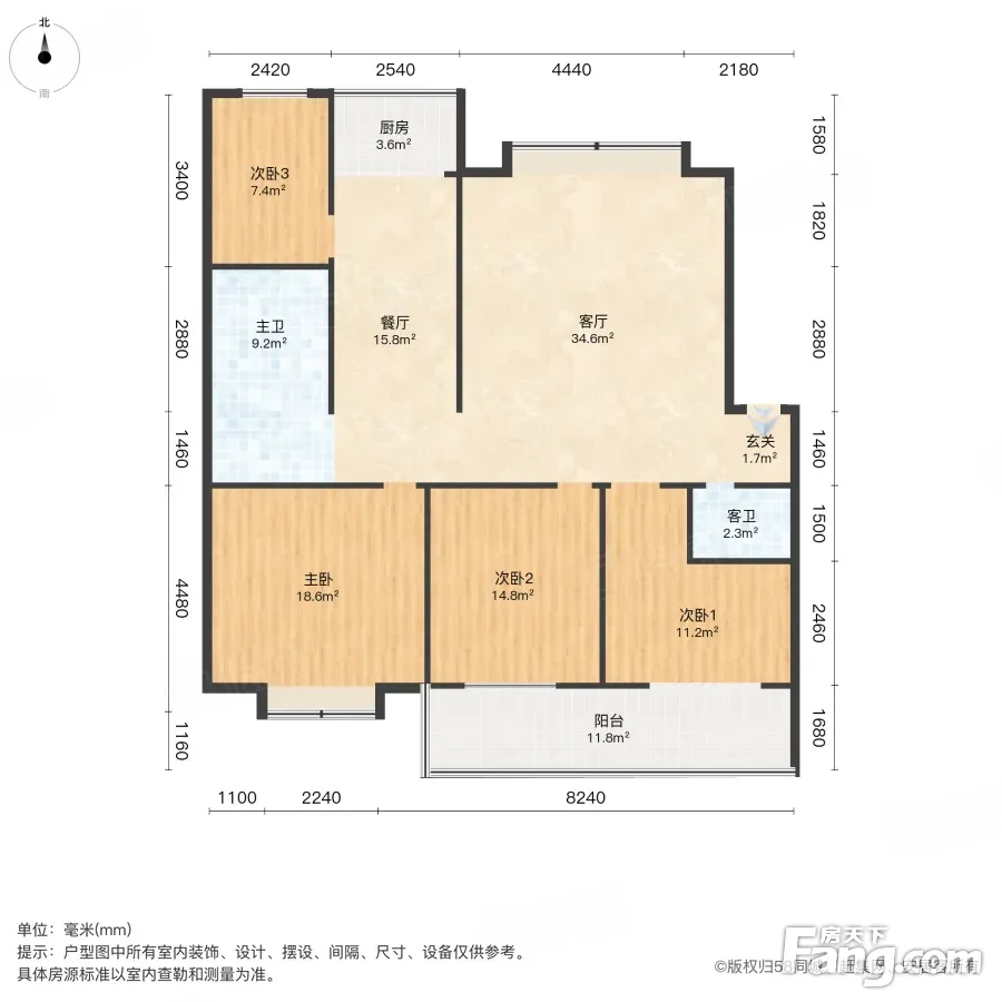 户型齐全,主打明厨,明卫,客厅朝南,主卧朝南三居