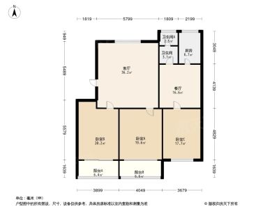 户型齐全,主打户型方正,明卫,明厨,客厅朝南,主卧朝南三居
