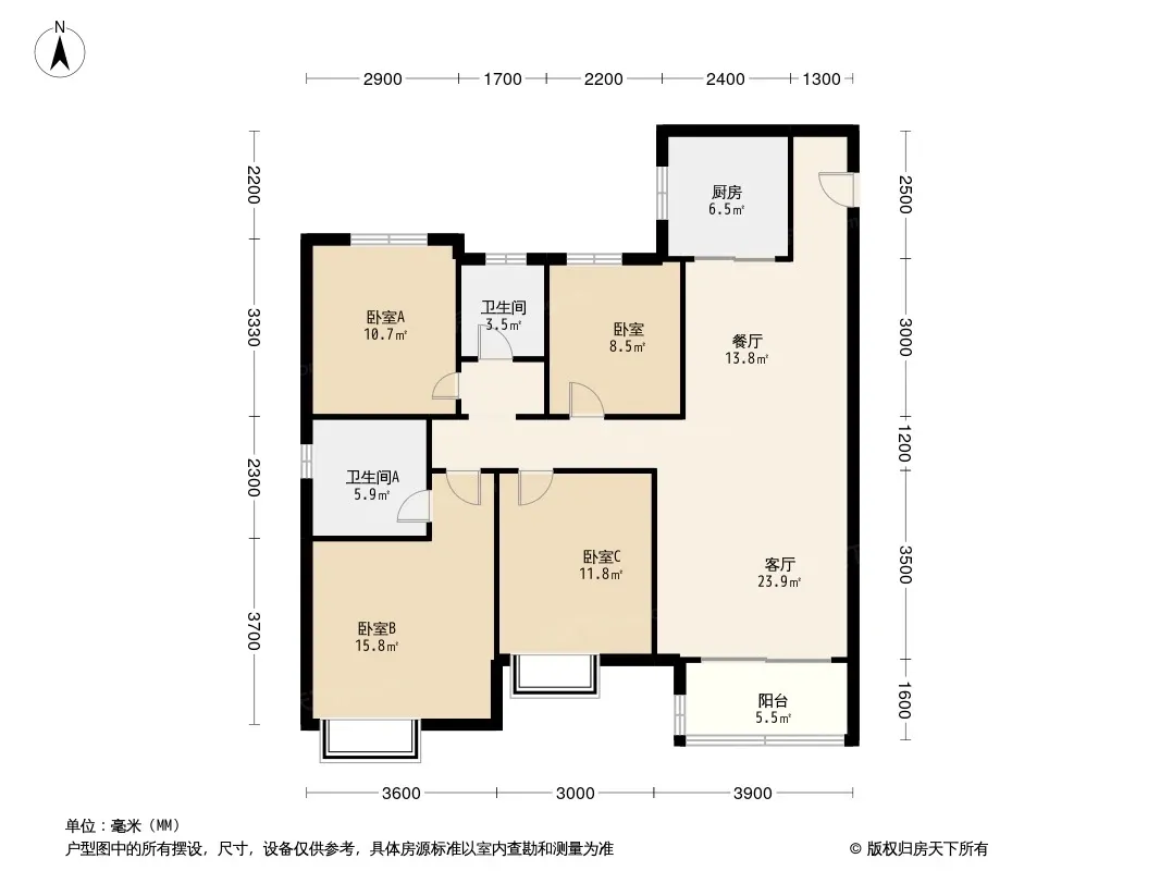 房子3开间朝南,客厅朝南,主卧朝南,1次卧朝南,书房朝北,儿童房朝北,厨房朝北