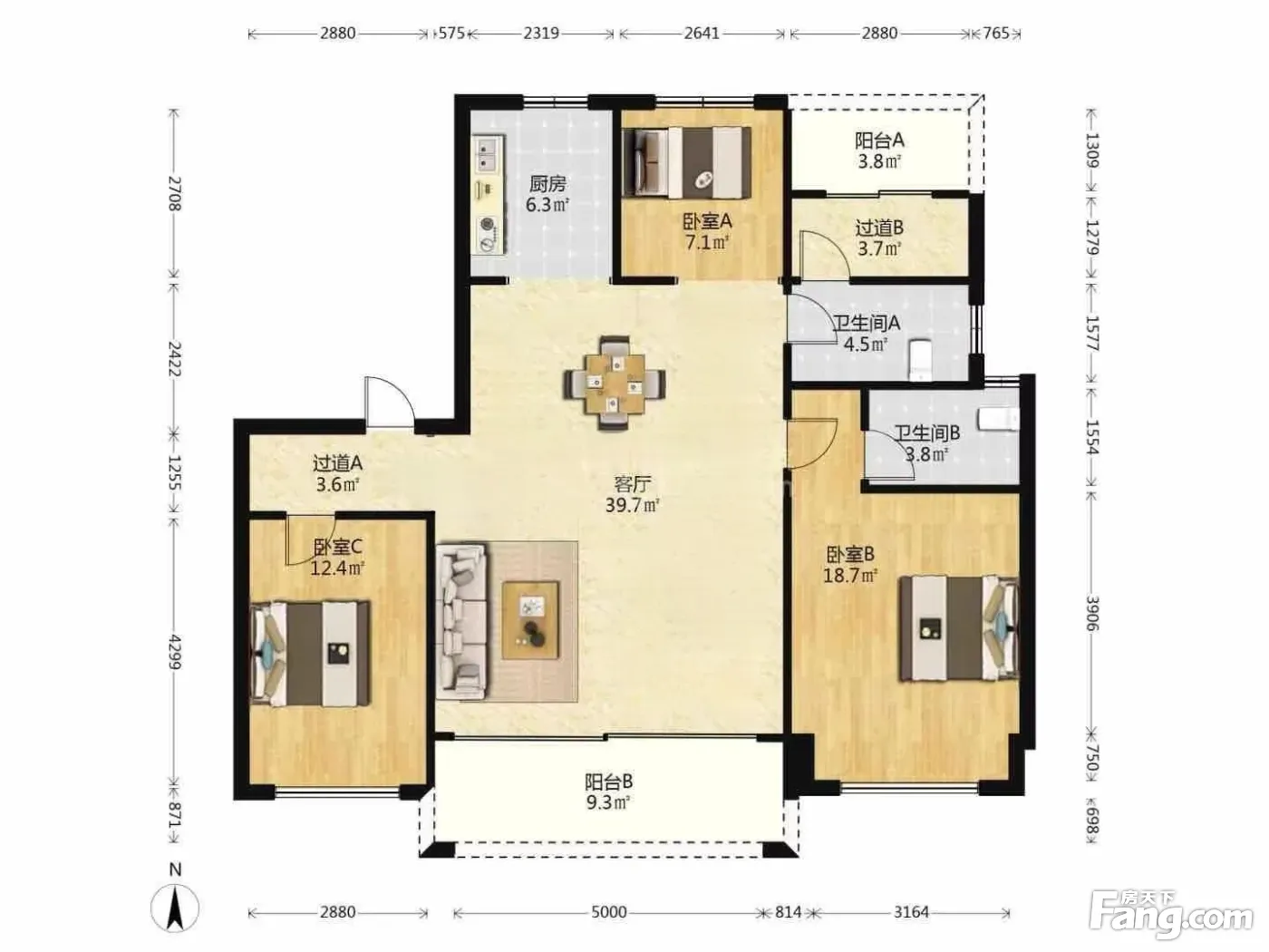 户型齐全,主打户型方正,动静分离三居