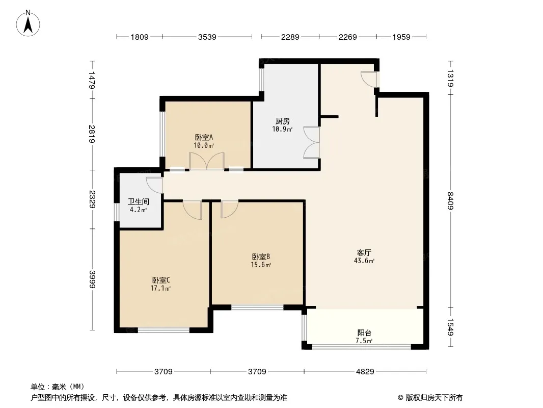 户型齐全,主打户型方正,明厨,独立衣帽间,客厅朝南,双阳台三居