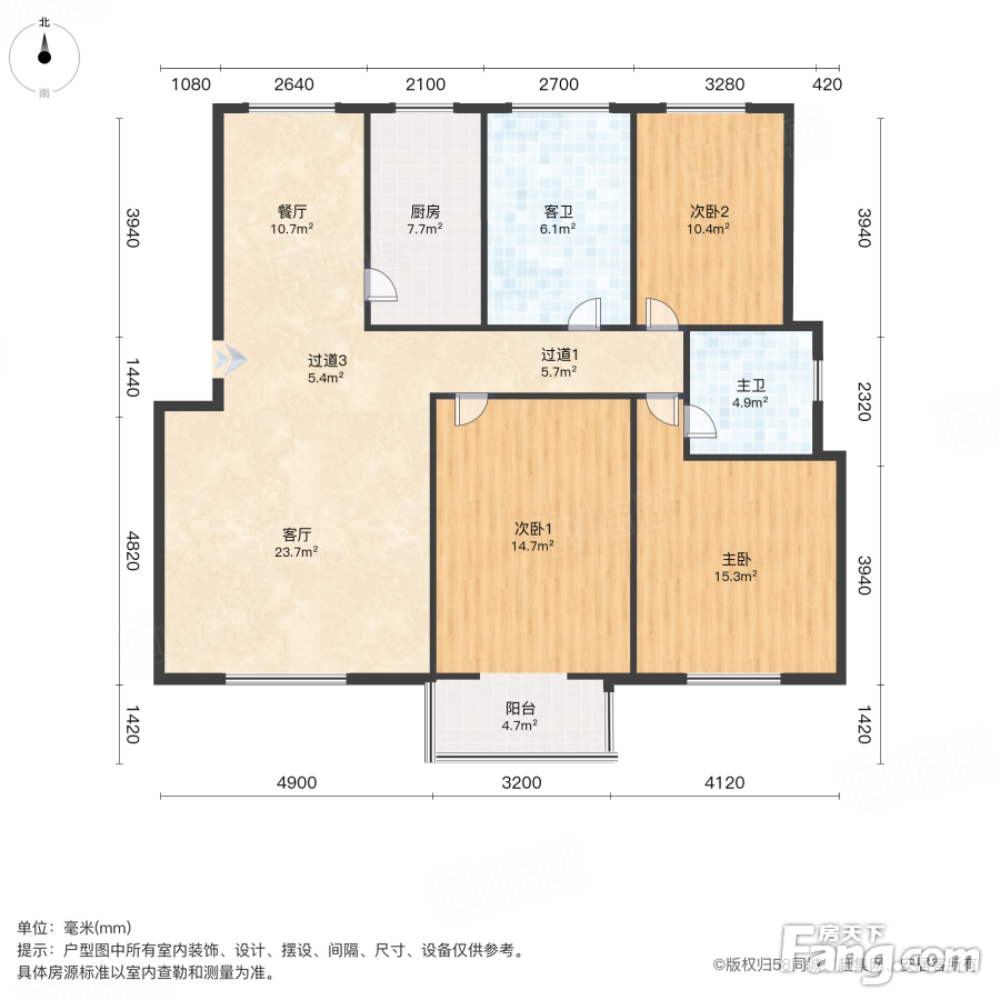 户型齐全,主打明卫,明厨,客厅朝南,主卧朝南三居