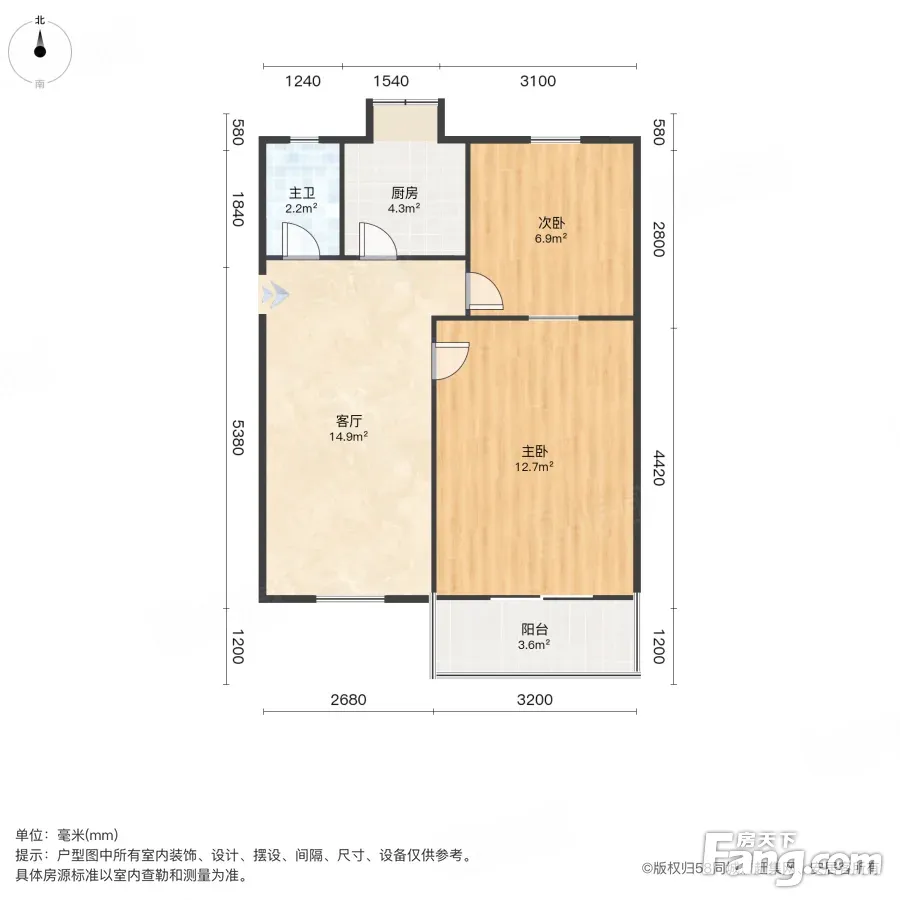 户型齐全,主打户型方正,明厨,客厅朝南,主卧朝南二居