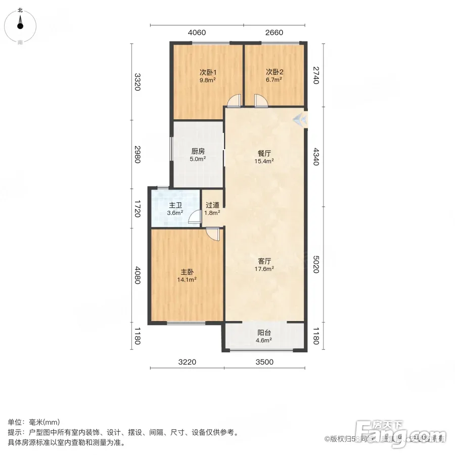 南北通透 天鸿君邑 3室2厅 精装修