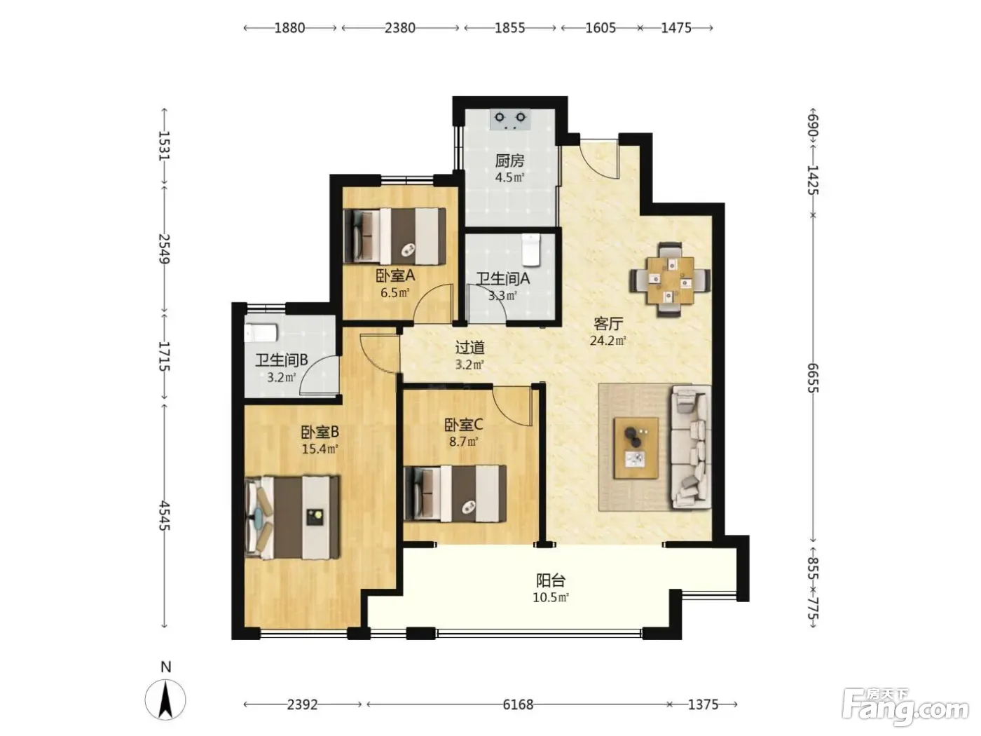 户型齐全,主打南北通透,采光充足三居