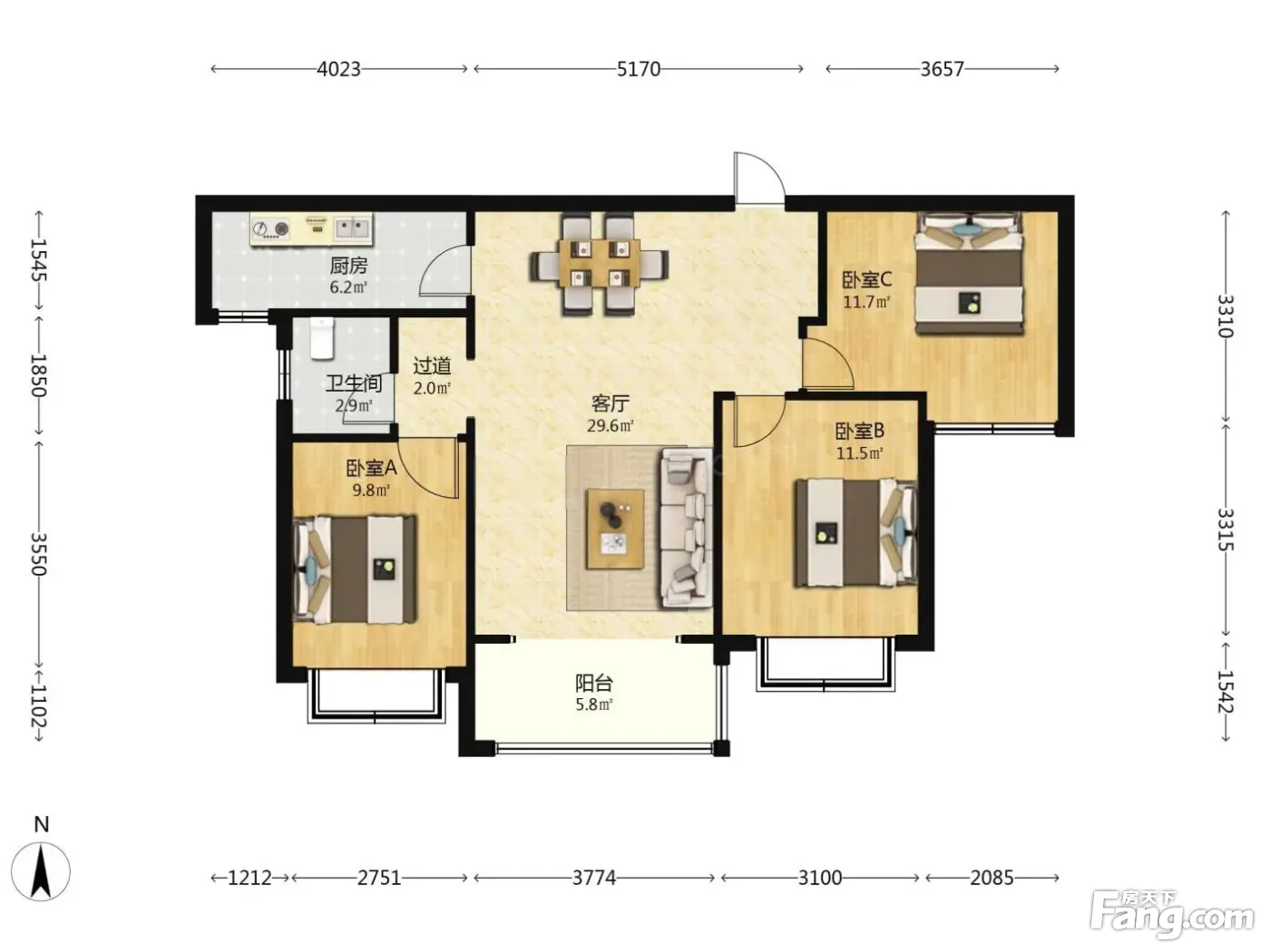 3室1厅1卫