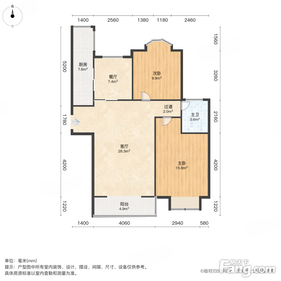 户型齐全,主打明厨,客厅朝南二居