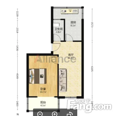 房屋南北通透,标准的一室一厅一厨一卫,利用空间大,没有浪费面积