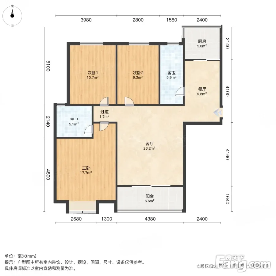 户型齐全,主打户型方正,明卫,明厨,主卧朝南三居