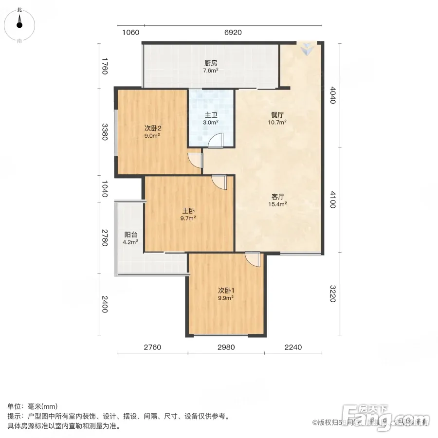 户型齐全,主打主卧朝南,卧室带阳台三居