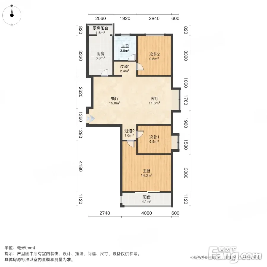 户型齐全,主打户型方正,明卫,客厅朝南,双阳台三居