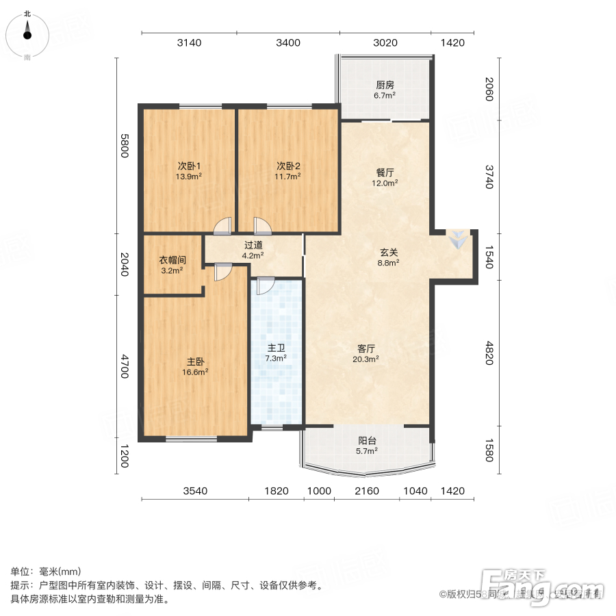 户型齐全,主打户型方正,明卫,明厨,客厅朝南,主卧朝南三居
