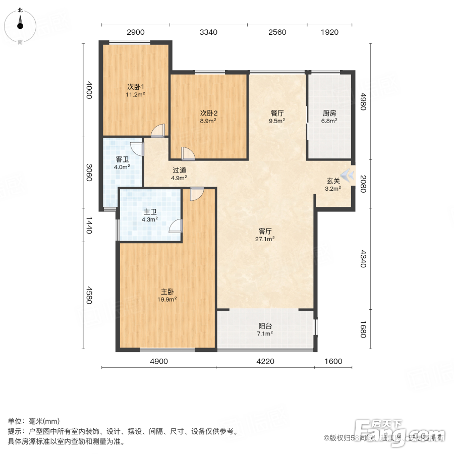 户型齐全,主打明卫,客厅朝南,主卧朝南三居
