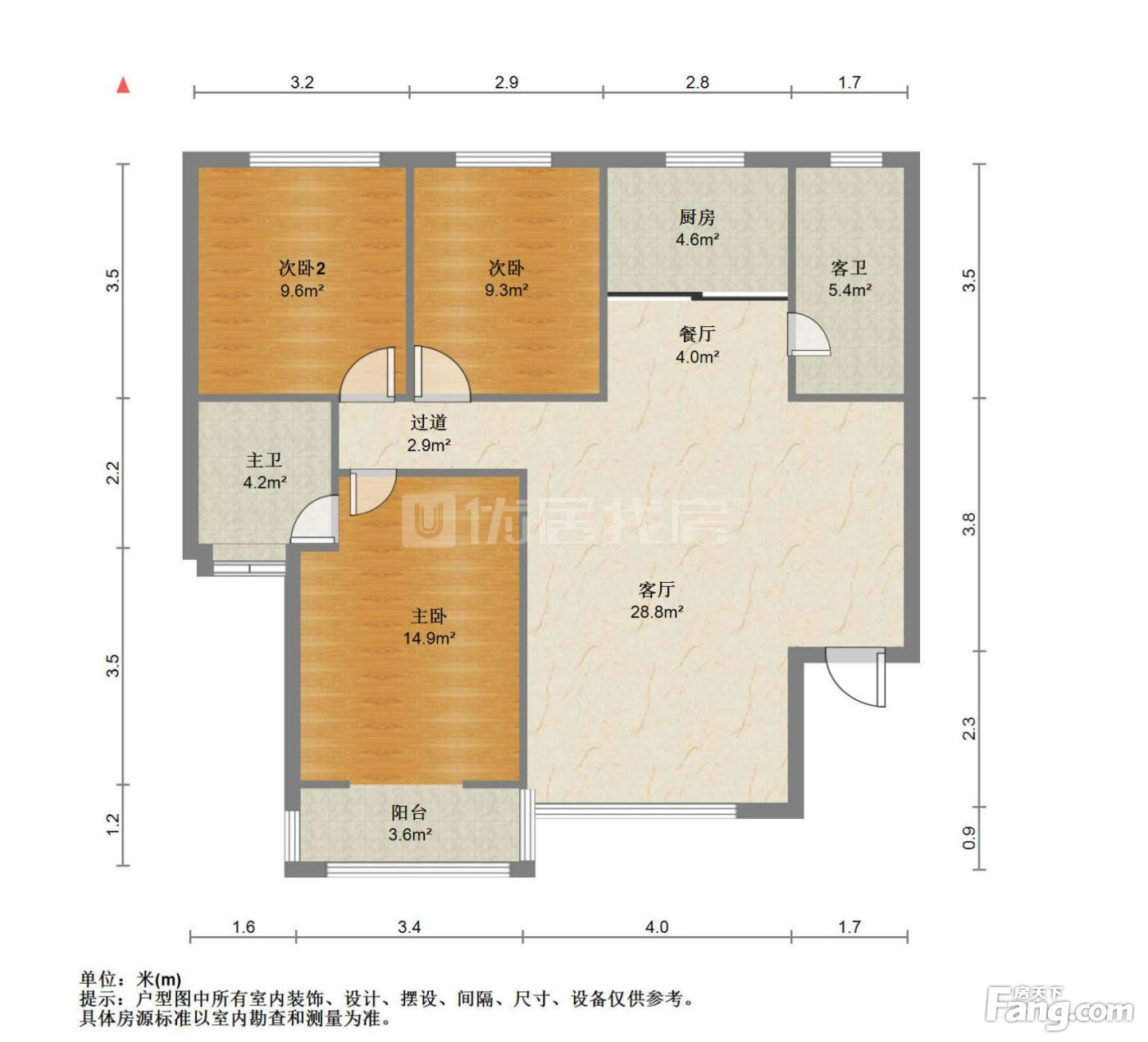 户型齐全,主打户型方正,明卫,明厨,客厅朝南,主卧朝南三居