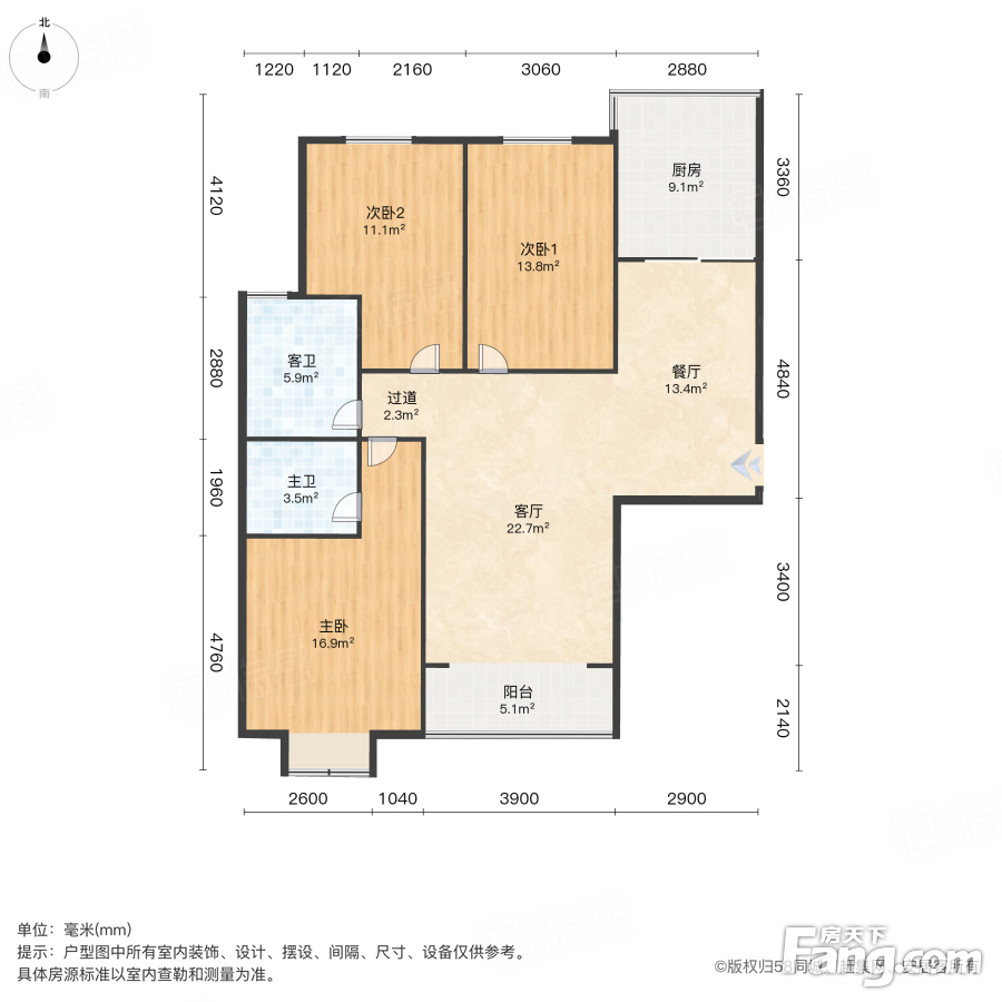 户型齐全,主打户型方正,明卫,明厨,客厅朝南三居