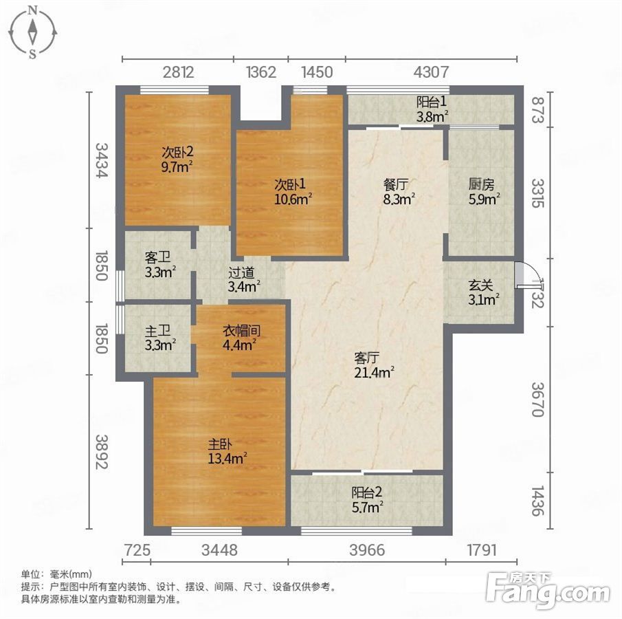 户型齐全,主打明卫,客厅朝南,主卧朝南三居