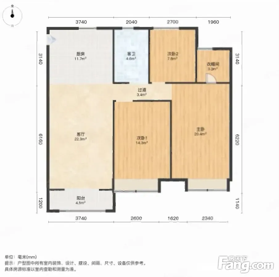 房子3开间拆哦男,客厅朝南,主卧朝南,次卧朝南,1次卧朝北,卫生间,厨房朝北,