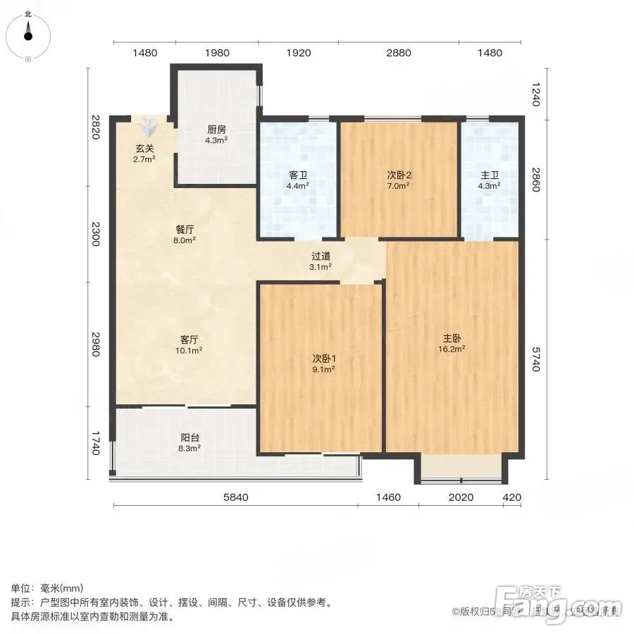 户型齐全,主打客厅朝南,卧室朝南三居