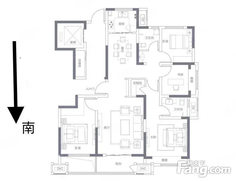 户型齐全,主打客厅朝南,卧室朝南三居