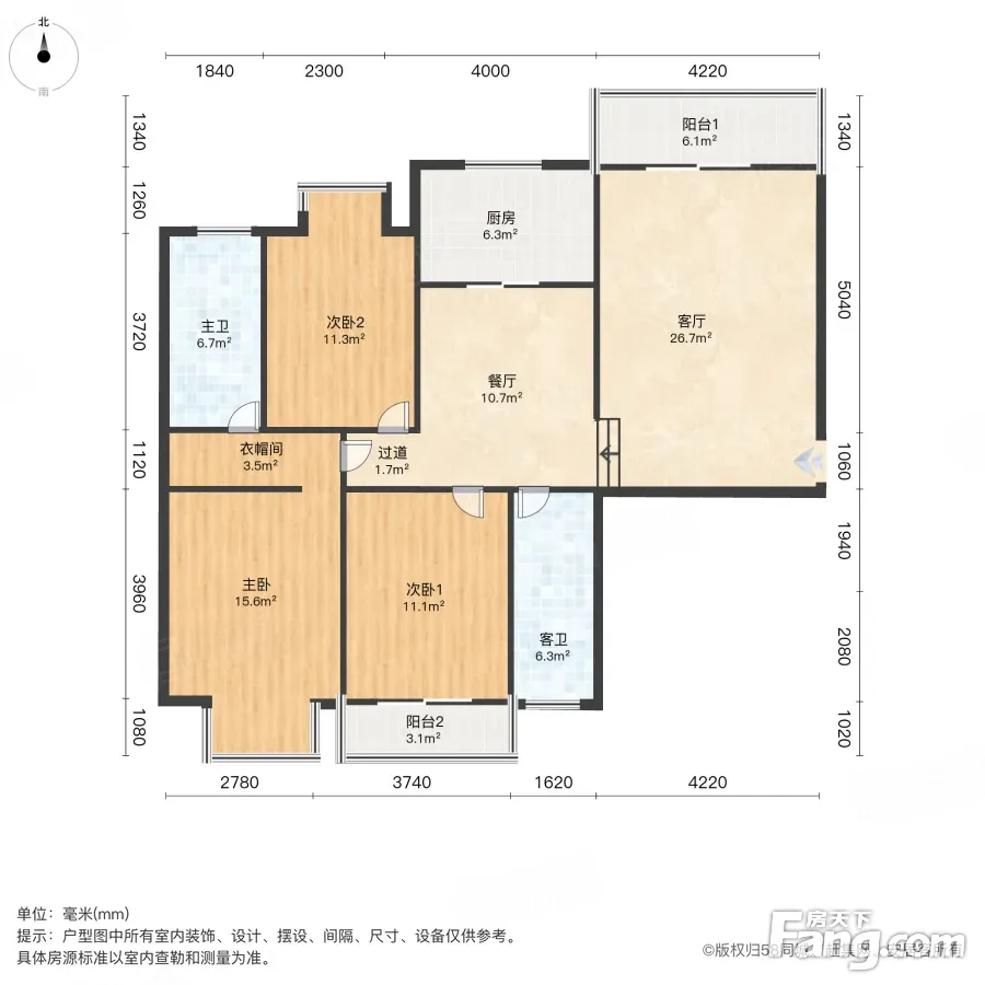户型齐全,主打户型方正,明卫,明厨,客厅朝南,主卧朝南三居