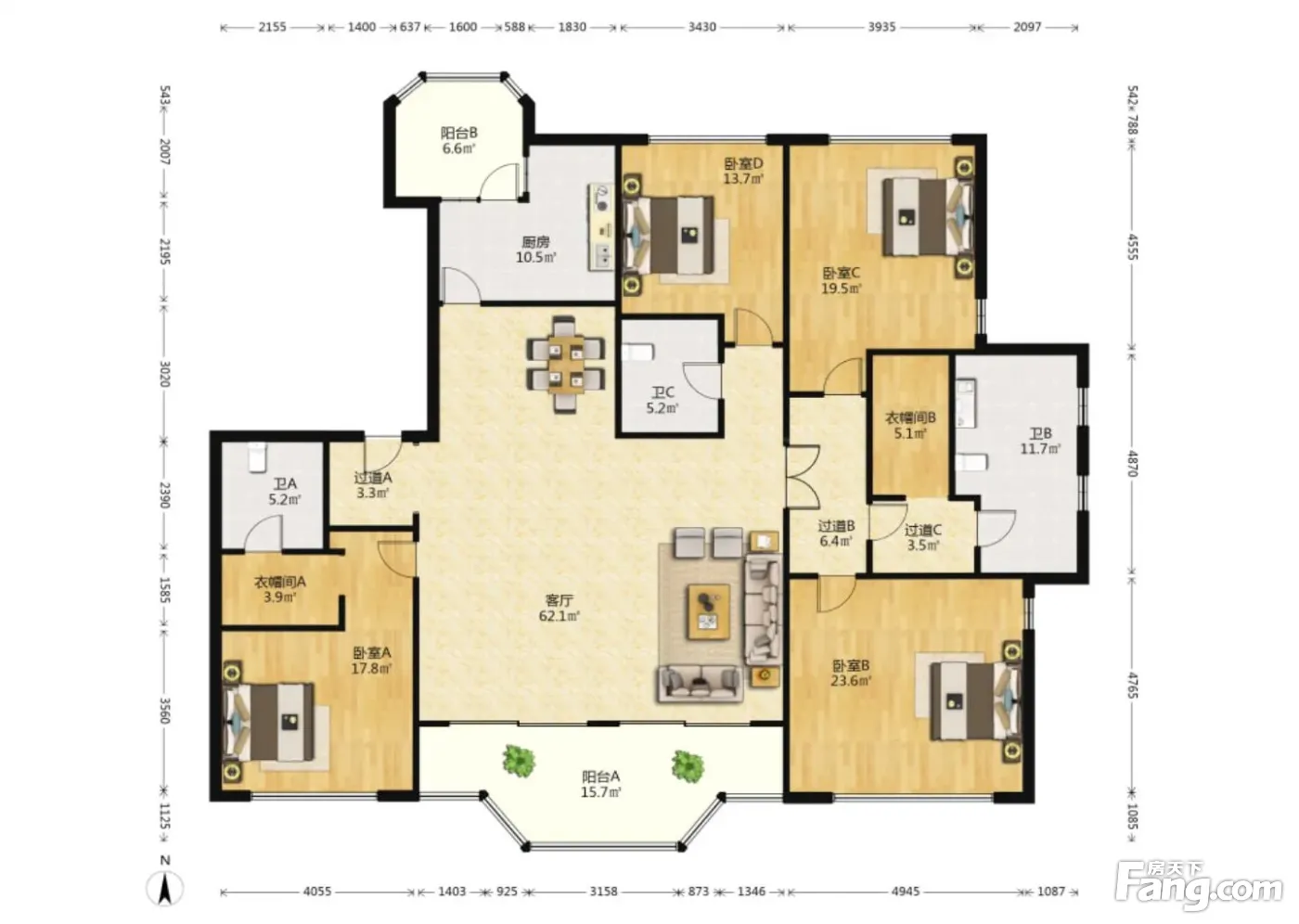 银润中央广场户型主要有240平-298平的明卫,双阳台,双卧朝南,主卧朝南的四居 、125平-220平的明厨,明卫,客厅朝南,全明格局,双卧朝南的三居 、290平-399平的明卫,双卧朝南,主卧朝南的五居 。