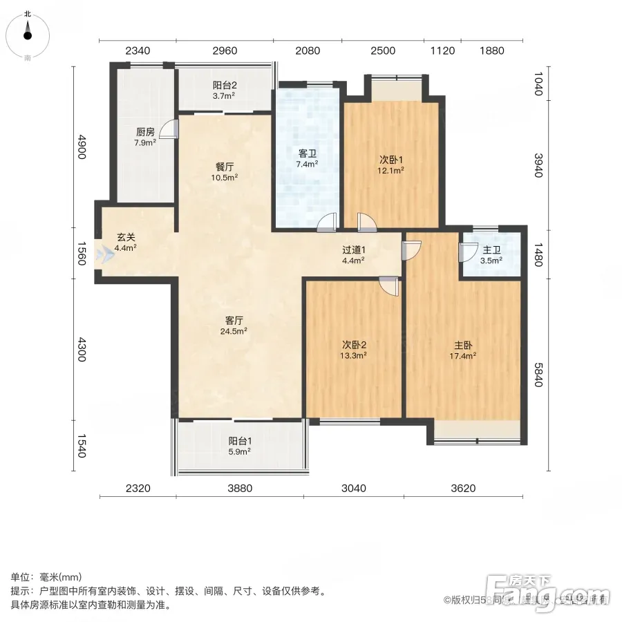 红太阳花园|明星3房户型|南北通透楼间距宽
