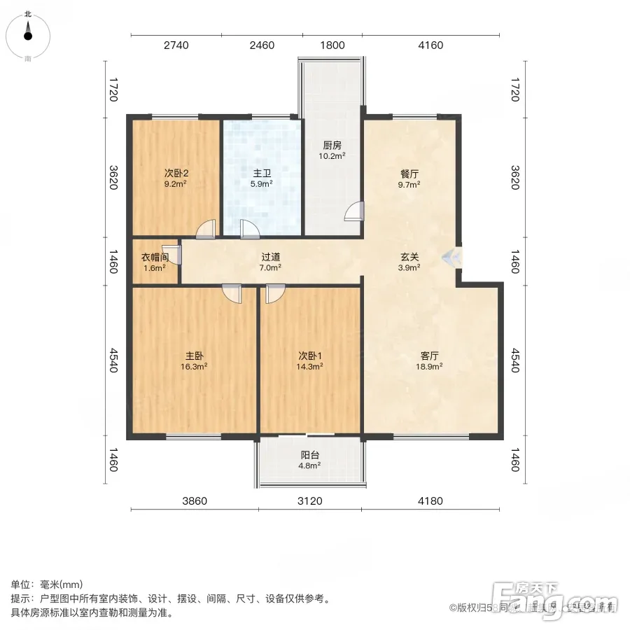 户型齐全,主打明卫,明厨,客厅朝南,主卧朝南三居