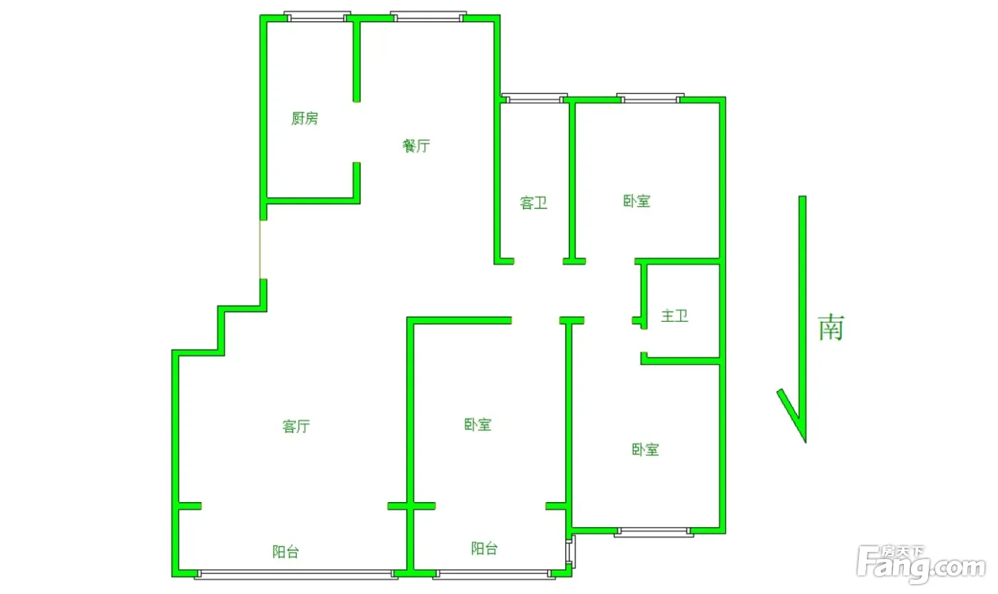 户型齐全,主打明卫,明厨,客厅朝南,主卧朝南三居