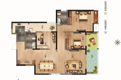 户型齐全,主打全明格局,L型厨房三居