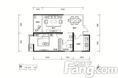 户型齐全,主打户型方正,动静分离一居