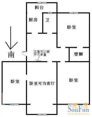 户型齐全,主打明厨,客厅朝南,主卧朝南二居