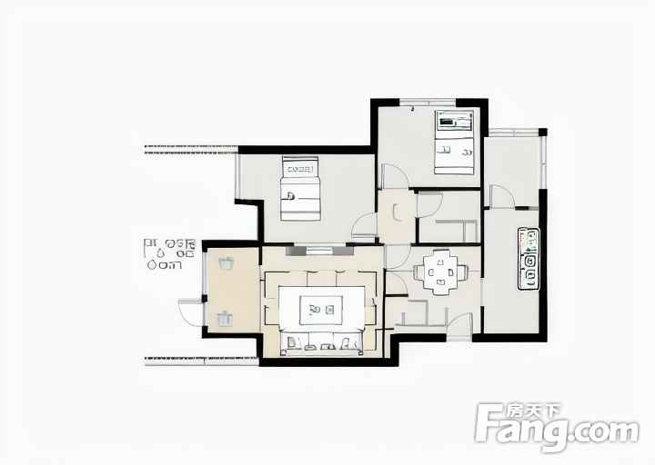 户型齐全,主打户型方正,明厨,主卧朝南二居