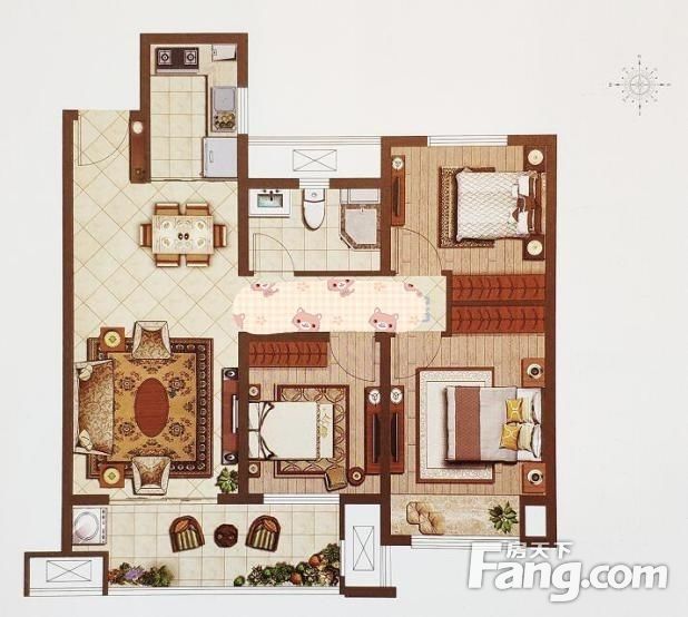 户型齐全,主打主卧带卫,U型厨房三居
