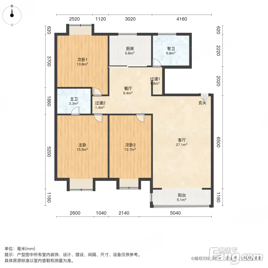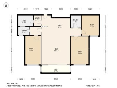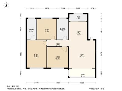 户型齐全,主打户型方正,明卫,明厨,客厅朝南,主卧朝南三居