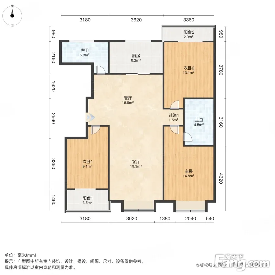 户型齐全,主打明卫,明厨,客厅朝南,主卧朝南三居