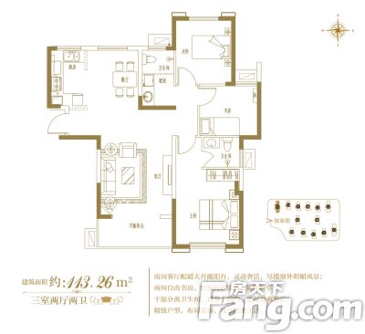 户型齐全,主打露台,南北通透,主卧带卫,厨卫不对门,户型方正,客厅朝南,主卧朝南,全明格局三居
