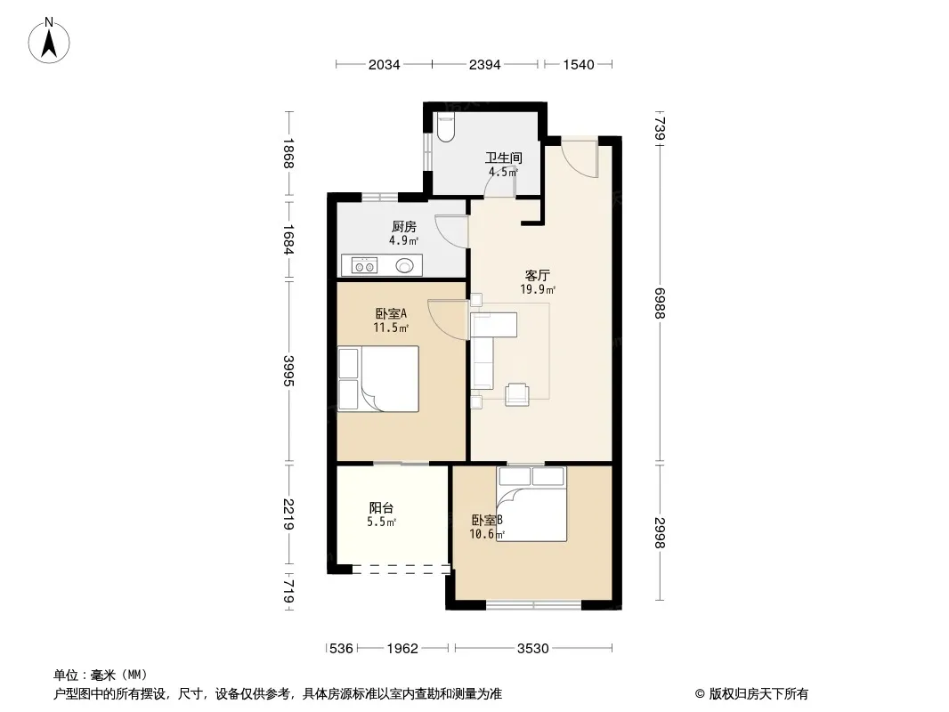 户型齐全,主打明厨,明卫,客厅朝南,全明格局,双卧朝南,主卧朝南二居