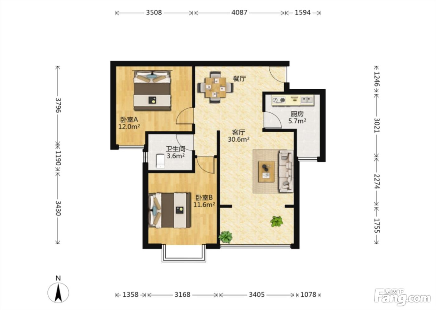 海珂·三千城 2室2厅 北