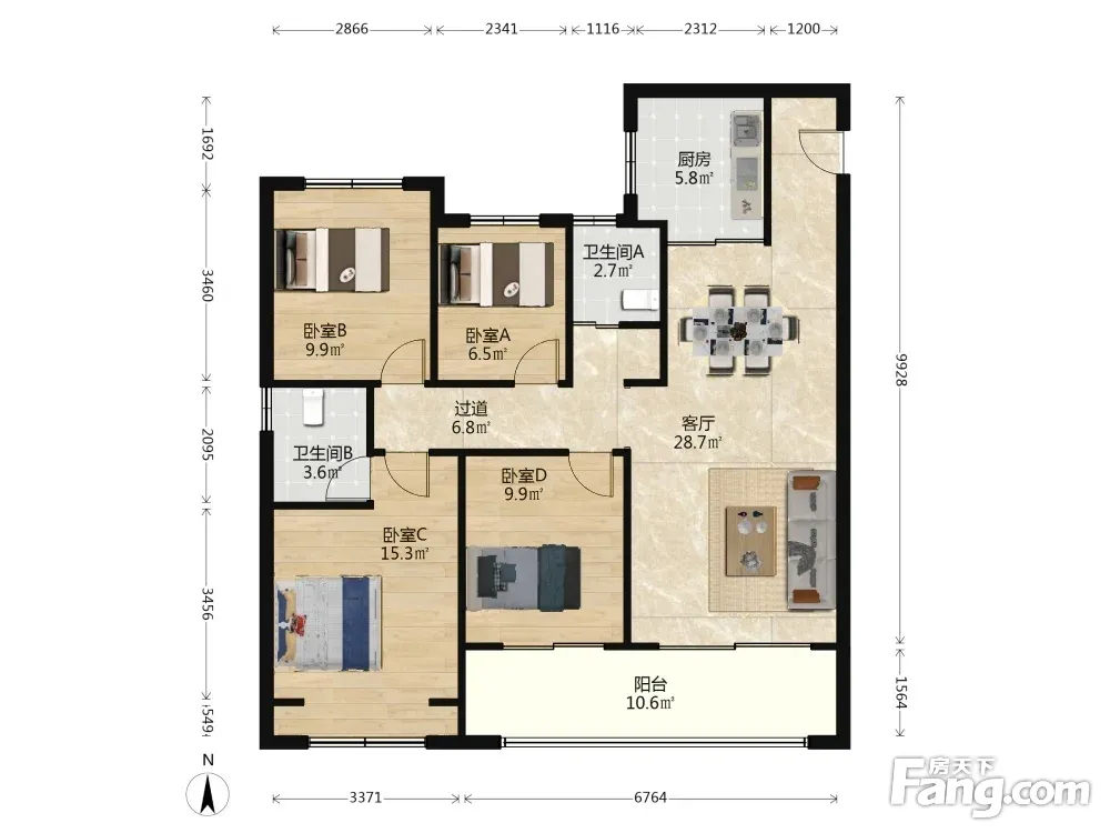 户型齐全,主打南北通透,户型方正三居