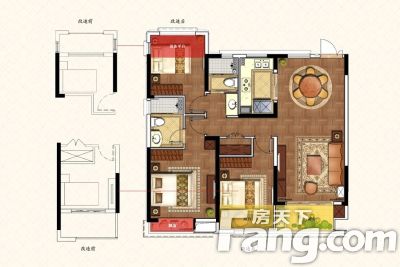 户型齐全,主打户型方正,三开间朝南,U型厨房三居