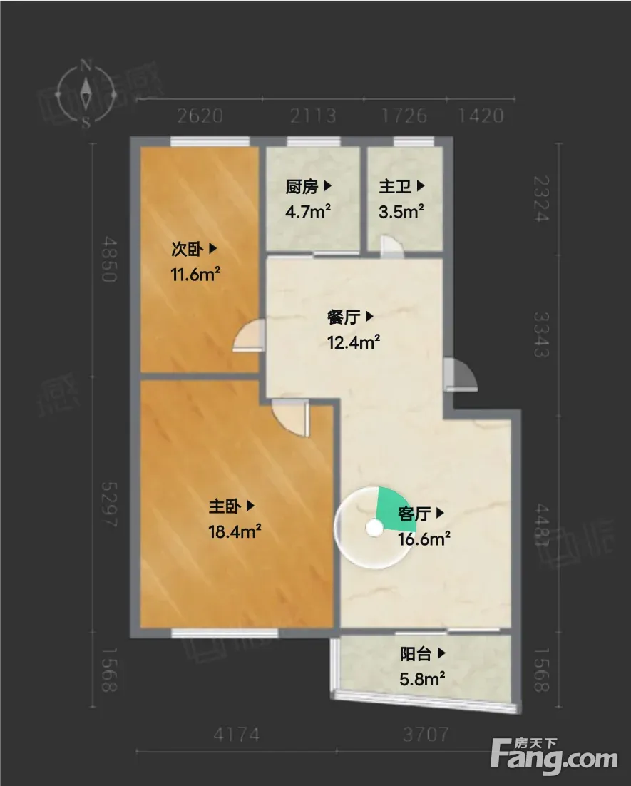户型齐全,主打户型方正,明卫,明厨,客厅朝南,主卧朝南二居
