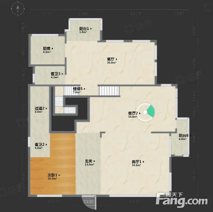 首付约1333万