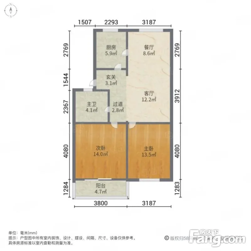 户型齐全,主打户型方正,明卫,明厨,双卧朝南,主卧朝南二居