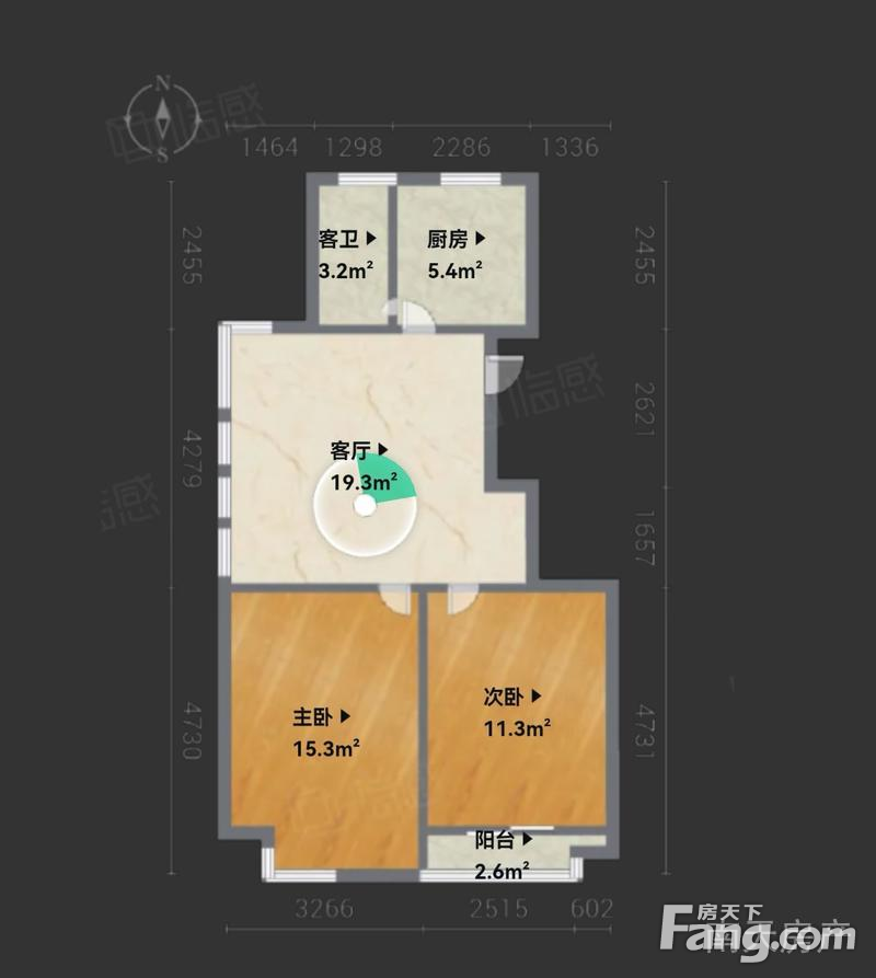 户型齐全,主打明卫,明厨,客厅朝南,主卧朝南二居