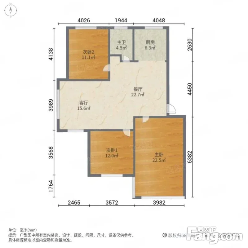 户型齐全,主打户型方正,明卫,明厨,双卧朝南,主卧朝南三居